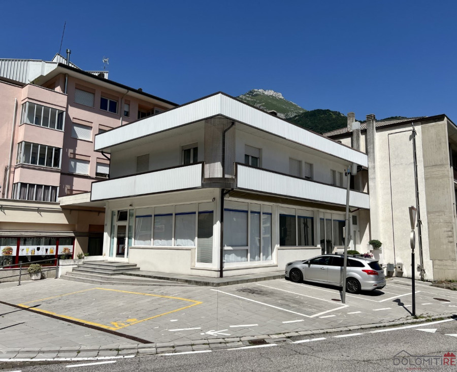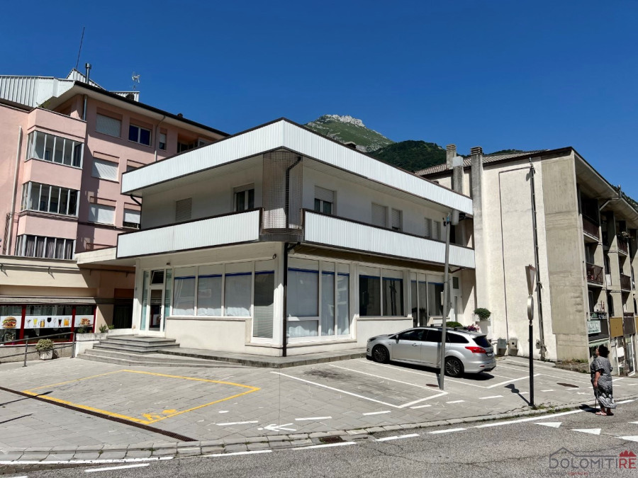 Nel centro di Longarone, in posizione ben visibile e con ampie vetrine che affacciano sulla strada principale, proponiamo in vendita un edificio ad uso commerciale-residenziale, costituito da negozio con ufficio al piano terra, negozio al piano primo sottostrada, magazzini, anti w.c. e w.c. e garage al piano secondo sottostrada. Al piano primo si trova l'appartamento, completamente ristrutturato, caratterizzato da ampi spazi e composto da ingresso, cucina-soggiorno, camera matrimoniale, camera doppia, locale ad uso ripostiglio-guardaroba, ulteriore ripostiglio, bagno principale, bagno di servizio e terrazza su due lati. Nessuna spesa di condominio.