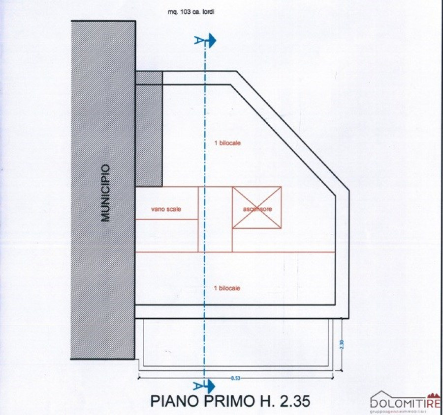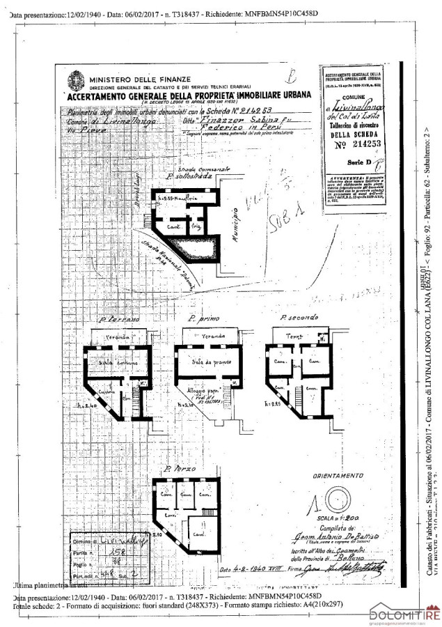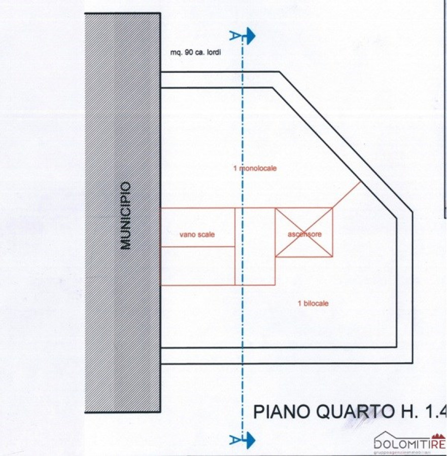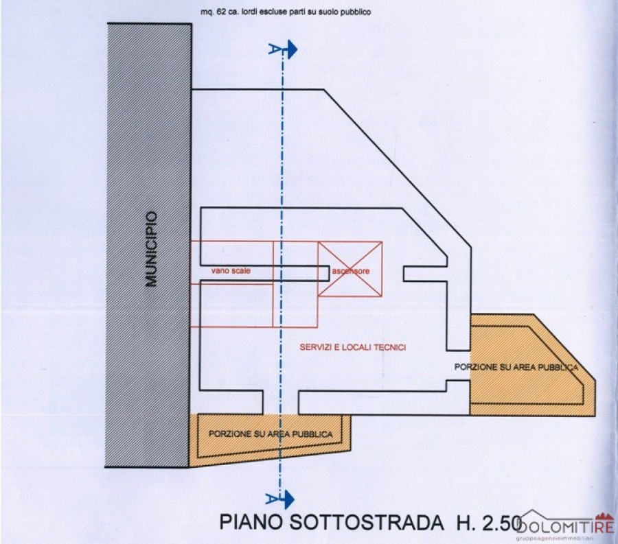 L'immobile è sviluppato su 4 piani + interrato con una superfice complessiva di 535 mq e un volume di 1370 mc.
