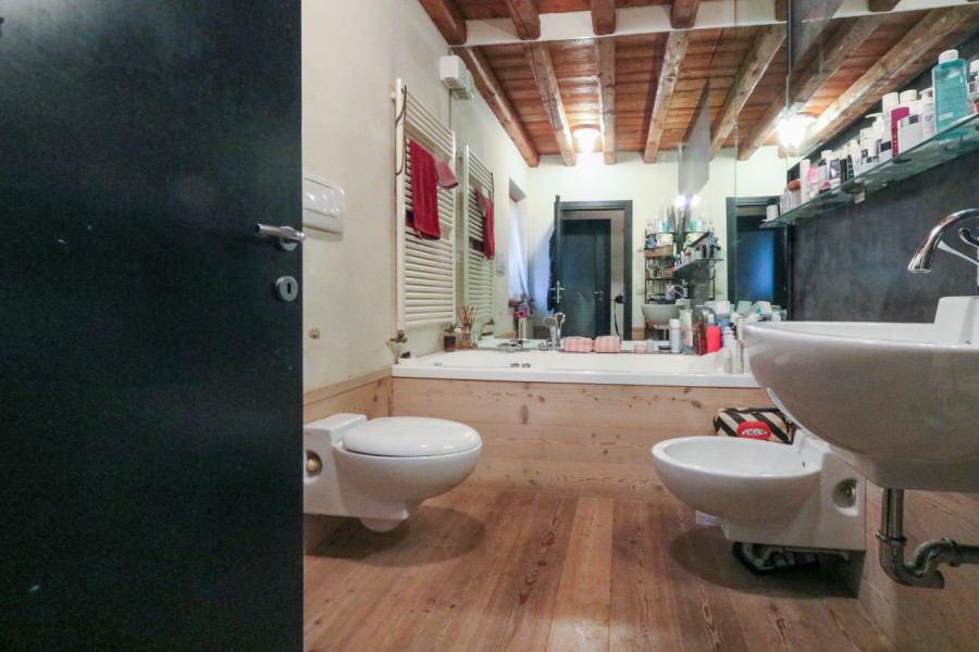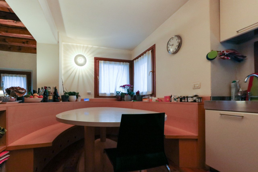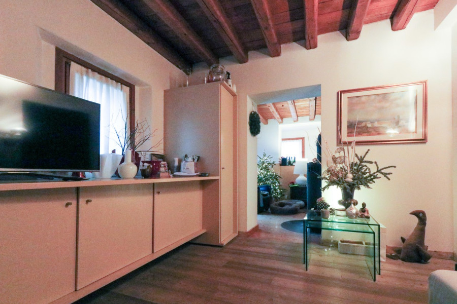 La porzione in oggetto è composta da ingresso con zona caldaia e ampio ripostiglio, accedendo al primo piano troviamo un ampia zona pranzo con cucina a vista, terrazzino, sala e ulteriore camera, bagno. Al secondo piano studio con terrazzo abitabile, tre camera di cui una passante, bagno.