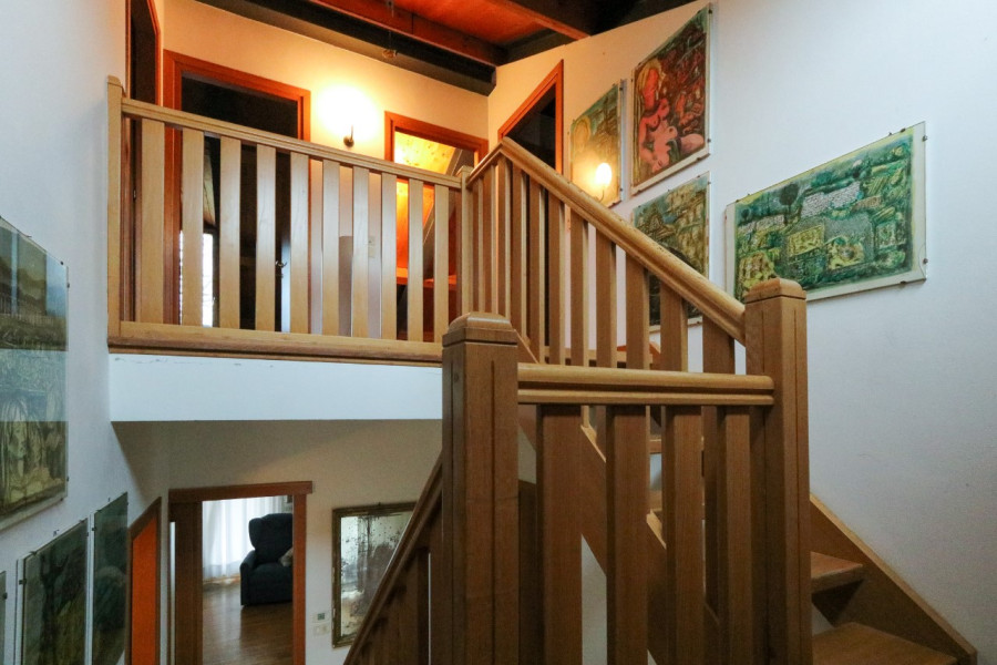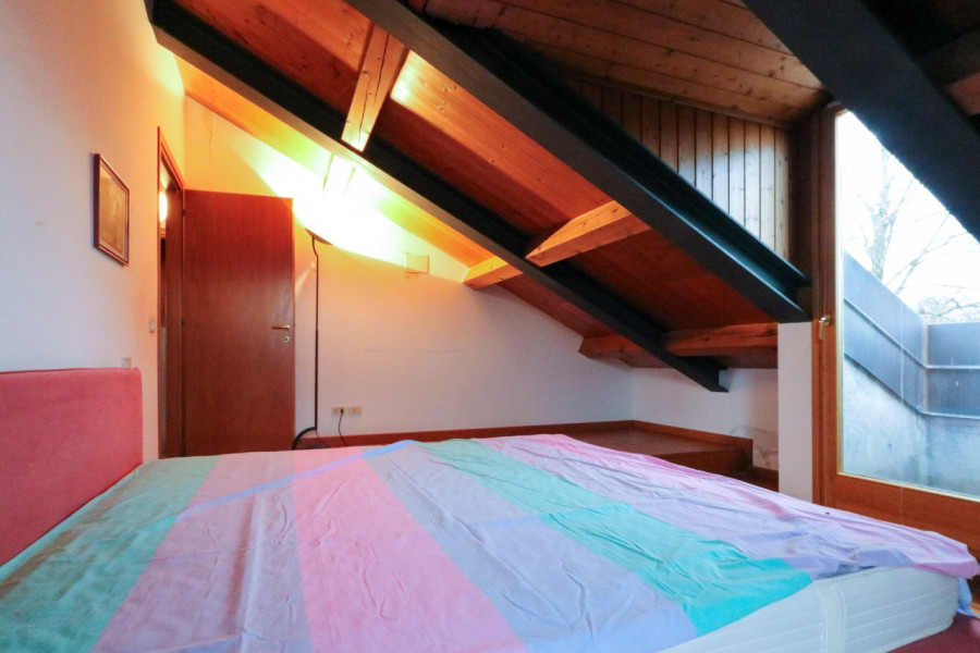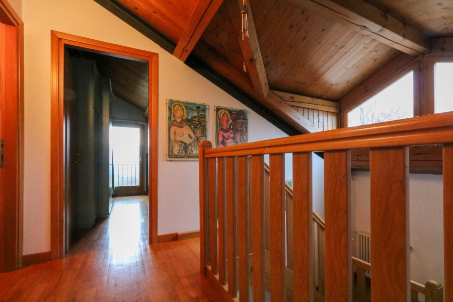 Al primo piano, mansardato, si sviluppa la zona notte con tre stanze e un bagno, in un ambiente caldo e accogliente.